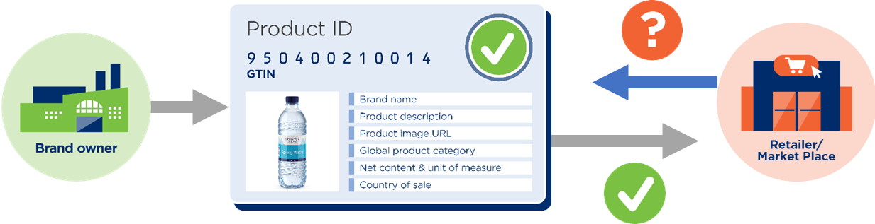Владельцы брендов делятся информацией о своих продуктах через локальную базу данных продуктов GS1 (Каталог продуктов), а розничные продавцы и платформы электронной коммерции могут получить доступ к этим данным в любое время через сервис Verified by GS1.